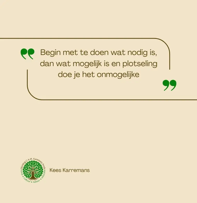 Met haar doelgerichte inzet levert Stichting Kees Karremans een duurzame bijdrage aan kunst, cultuur, natuur en educatie.